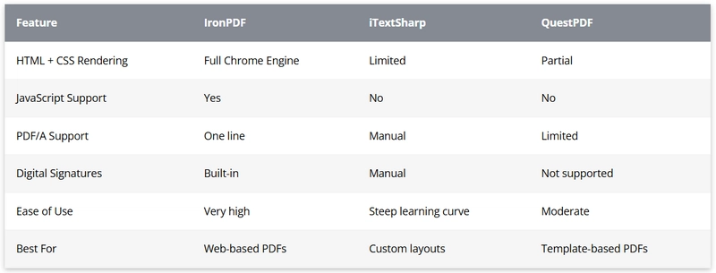 Comparing IronPDF to Other Libraries