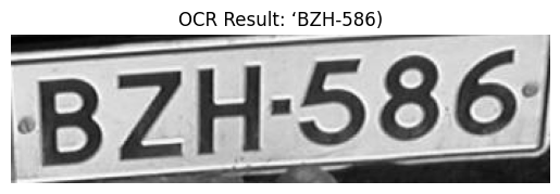 plt.title(f"OCR Result: {plate_text.strip()}")