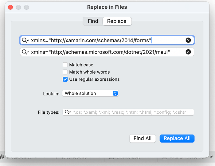 xmlns:ios="clr-namespace:Microsoft.Maui.Controls.PlatformConfiguration.iOSSpecific;assembly=Microsoft.Maui.Controls"Similarly you can replace other third party xml namesapces. For this you can use Visual Studio Code Replace all feature(Shift-Command-F)