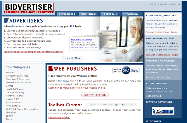 For a web publisher to earn money online from Website or Blog: Display the BidVertiser ads on your website or blog, get paid for clicks and conversions and get paid by PayPal, check or wire.