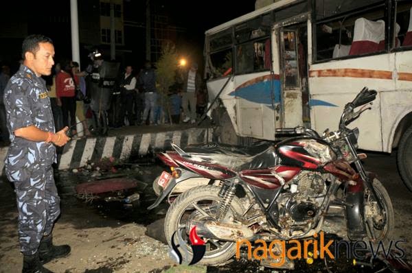 A Mini Bus numbered Ba.1.Kha.8676 has crushed 4 motorbikes killing 3 people in front of Kathmandu District Court at Babarmahal, Kathmandu. 6 people are injured by the vehicle when the driver lost control over it. People here are saying the brakes were failed but no any official information is coming yet.